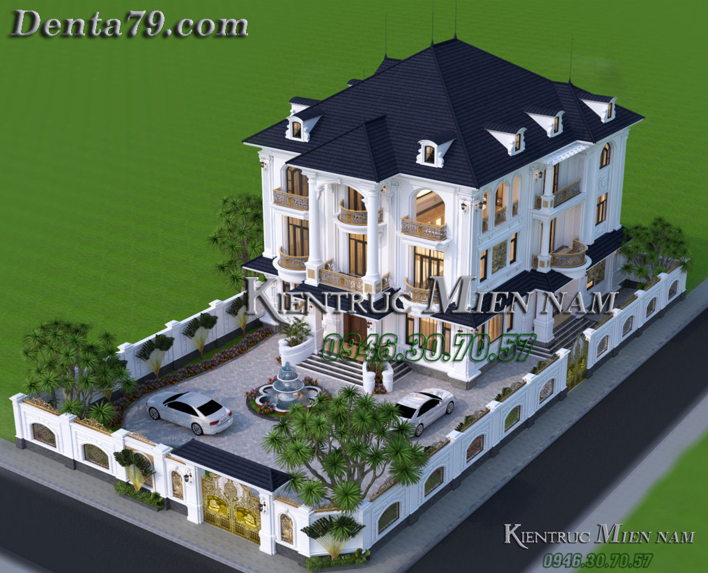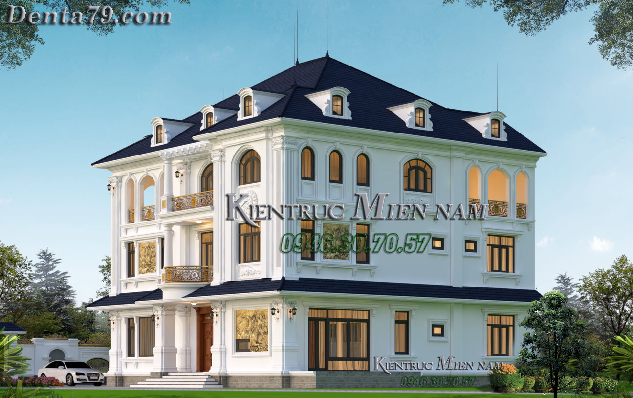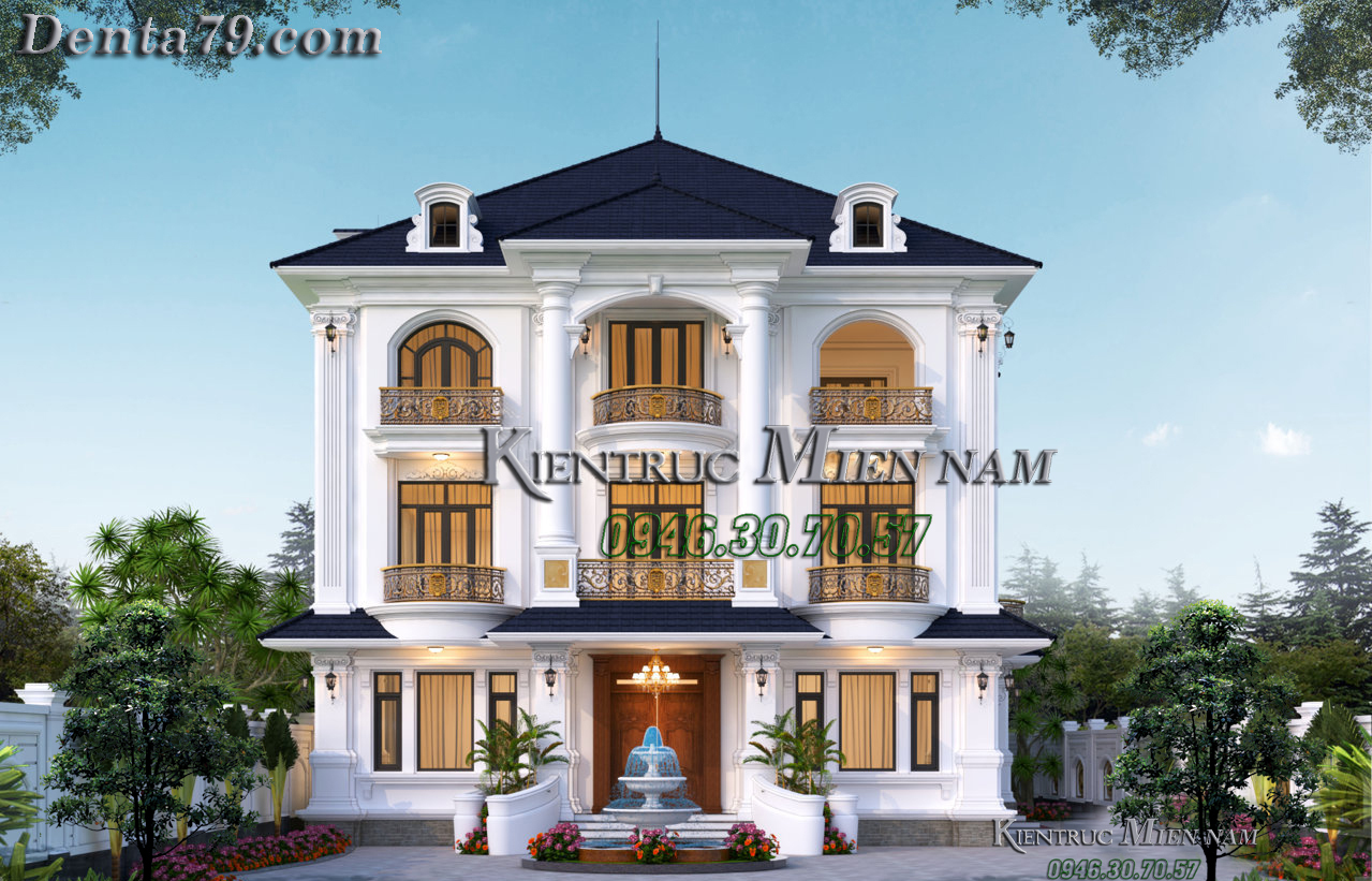 Hãy liên hệ với chúng tôi để được tư vấn thiết kế biệt thự đẹp và thi công xây dựng lâu đài biệt thự đẹp 3 tầng:  0946.30.70.57