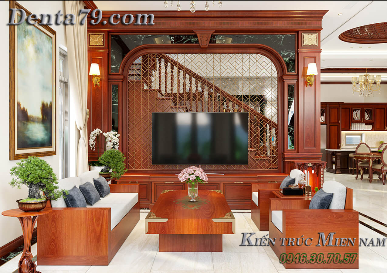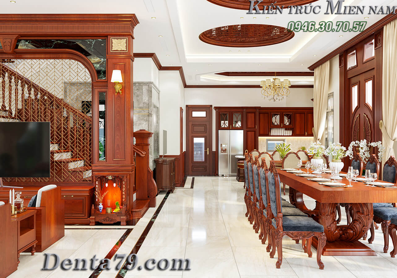 Bố trí công năng vật dụng biệt thự cổ điển 215m2