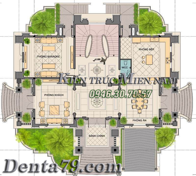 Mặt bằng tầng trệt biệt thự cổ điển 3 tầng