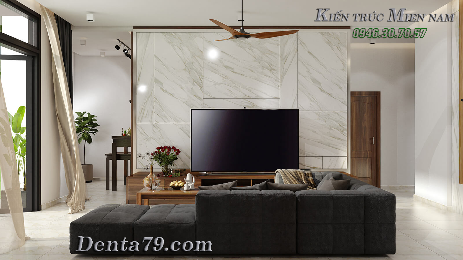 - Nhận thức được tầm quan trọng của những buổi sinh hoạt gia đình. Kiến trúc sư bố trí một phòng sinh hoạt chung ở giữa mẫu biệt thự hiện đại làm nơi sinh hoạt cho gia chủ.