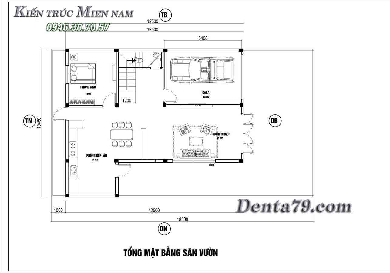 Mặt bằng công năng biệt thự hiện đại 11×18