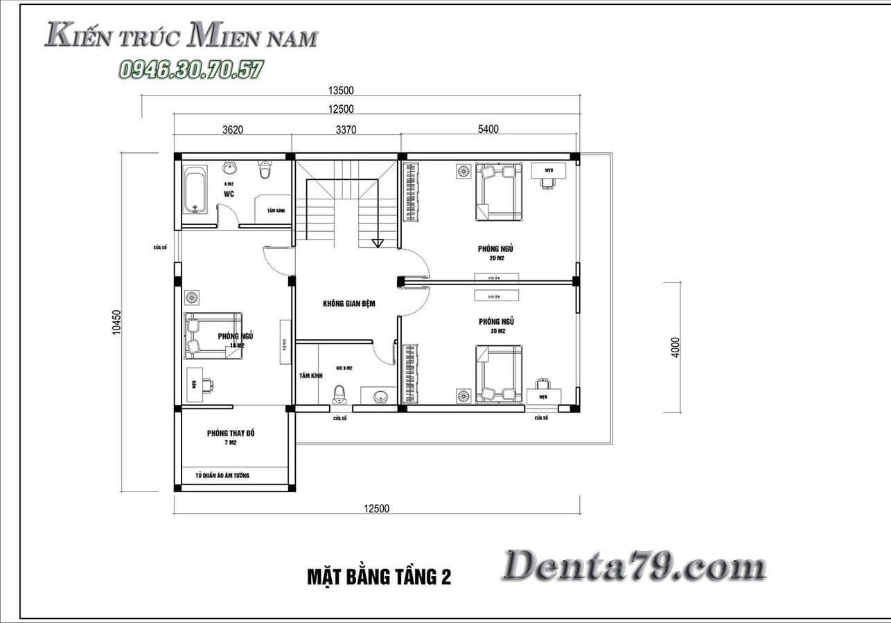 Tầng 2 gồm: Phòng ngủ master, không gian đệm, phòng ngủ 2, phòng ngủ 3