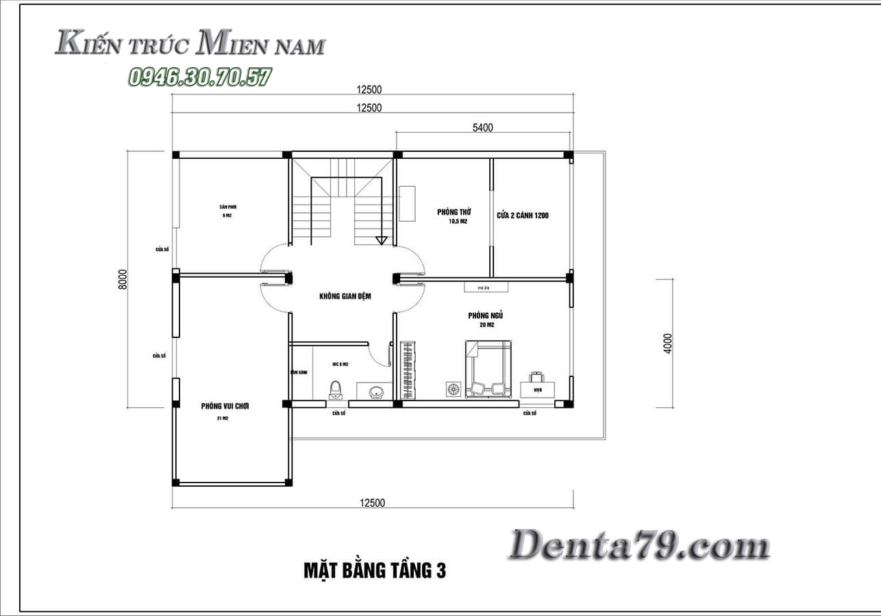 Tầng 3 gồm: Phòng ngủ, phòng thờ, phòng vui chơi