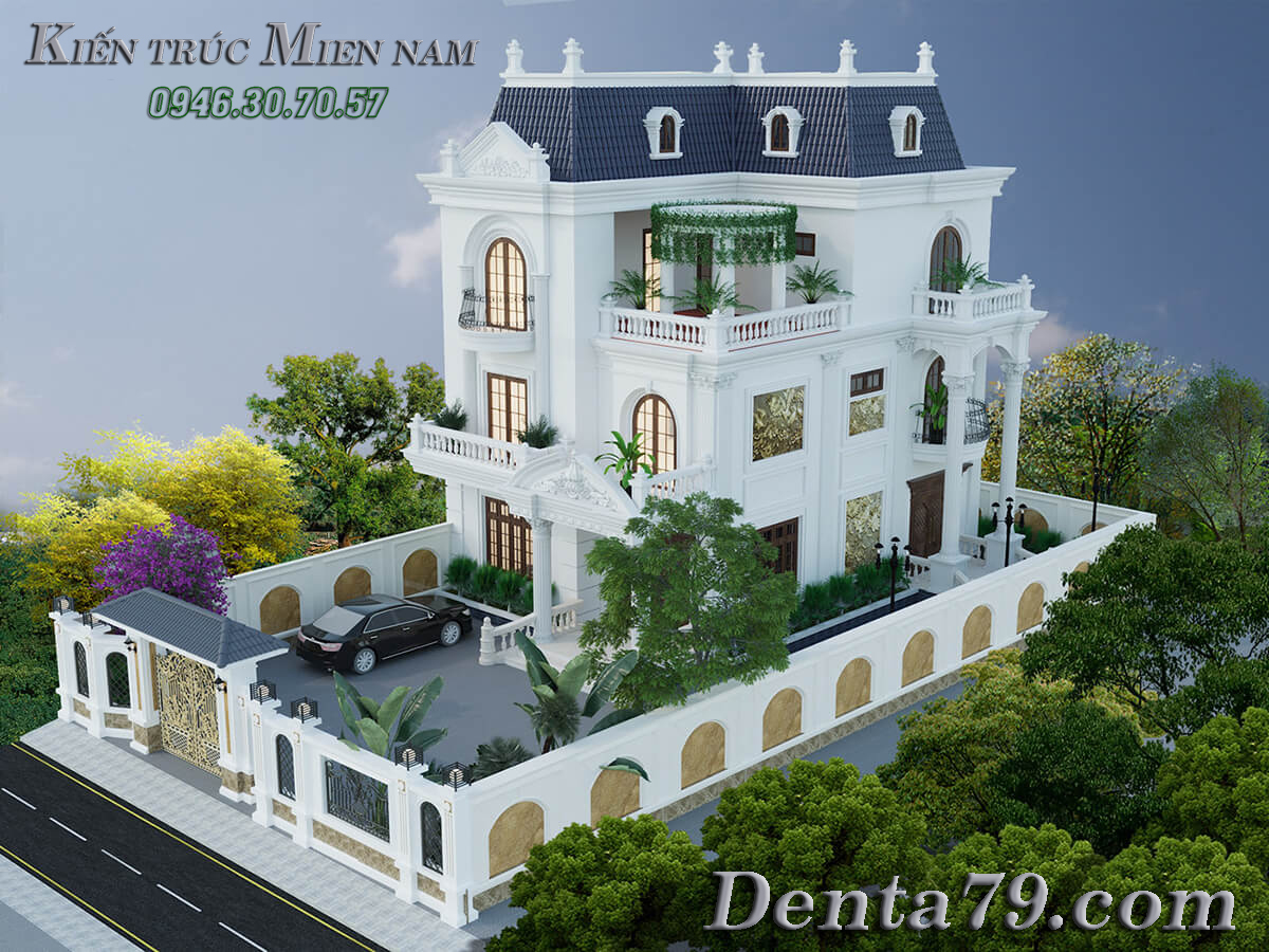 Kết luận: Biệt thự 3 tầng phong cách Pháp được tập trung vào hình khối kiến trúc và tính đăng đối trong bố cục kết hợp với màu sắc tinh tế, nổi bật điểm nhấn mỗi mảng tường, mỗi trụ, xung quanh cửa sổ tạo nên một tổng thể đẹp, hài hòa từng chi tiết.
