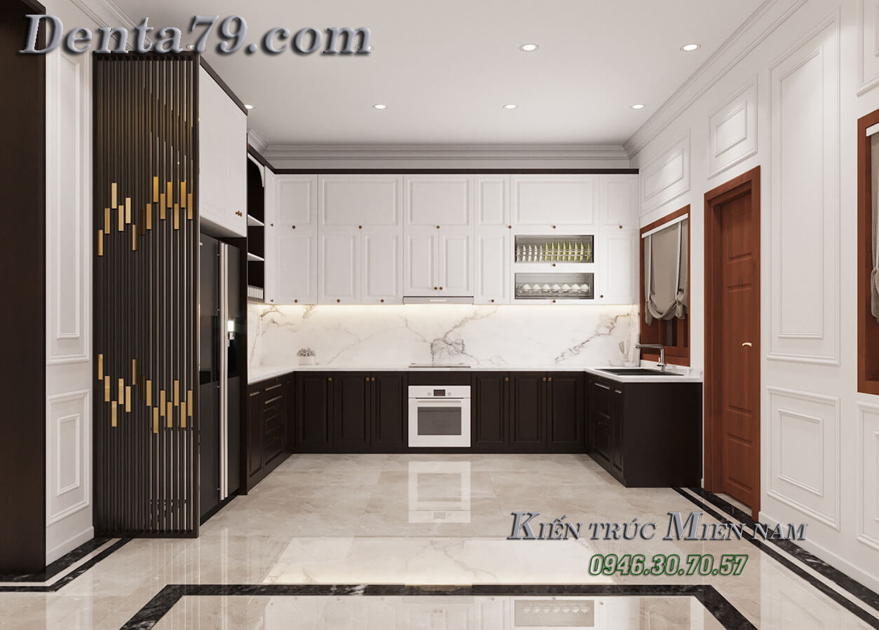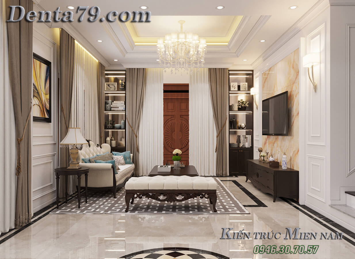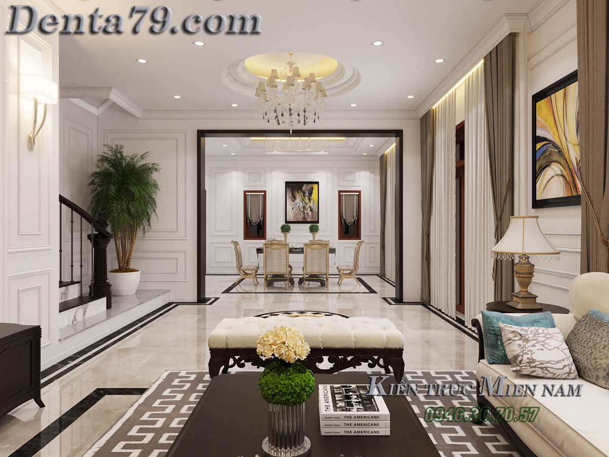 Không gian tầng 1 của mẫu biệt thự tân cổ điển đẹp hoàn toàn rộng rãi, thoải mái và sang trọng, chinh phục bạn bè và các thành viên trong gia đình.