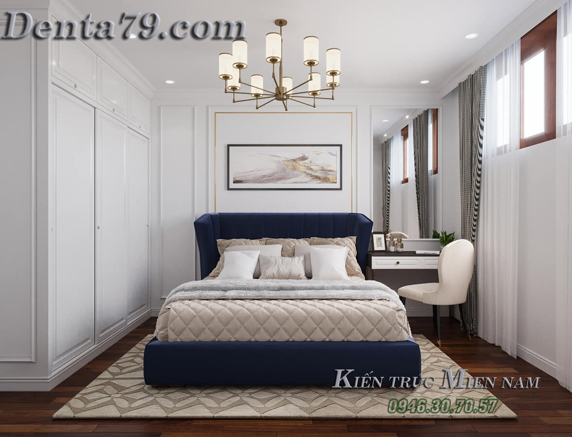 - Phòng ngủ 2 dành cho gia chủ kết nối với khu vực làm việc và nhà vệ sinh đối diện.