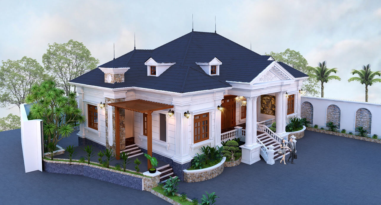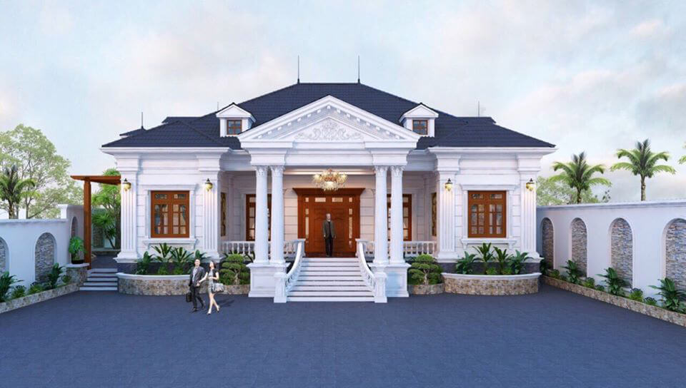 Thiết kế kiến trúc biệt thự vườn 1 tầng tân cổ điển