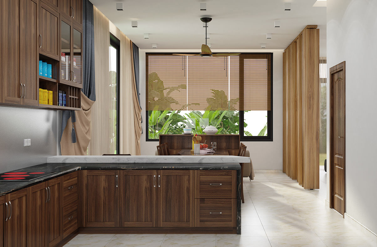 Nội thất bếp và phòng ăn biệt thự vườn 1 tầng tân cổ điển