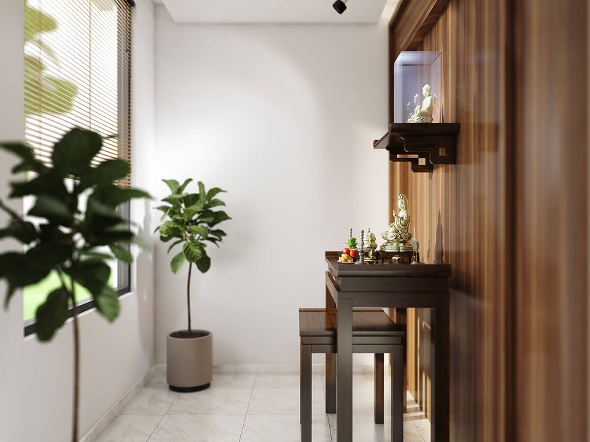 - Một phòng thờ rộng 16,5m nằm tách biệt so với các phòng khác, để đảm bảo sự thông thoáng. Cửa phòng thờ hướng ra sảnh chính và tránh các hướng đại kỵ.