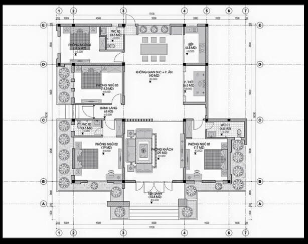 Bố trí công năng biệt thự vườn 1 tầng tân cổ điển